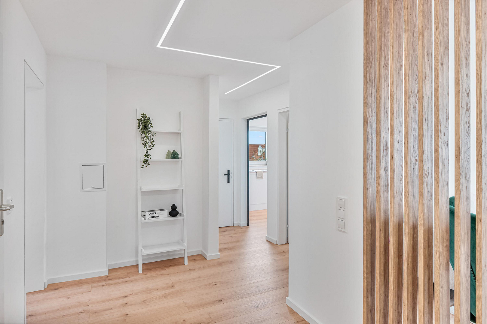 - LED-Streifenbeleuchtung im Flur und Bad