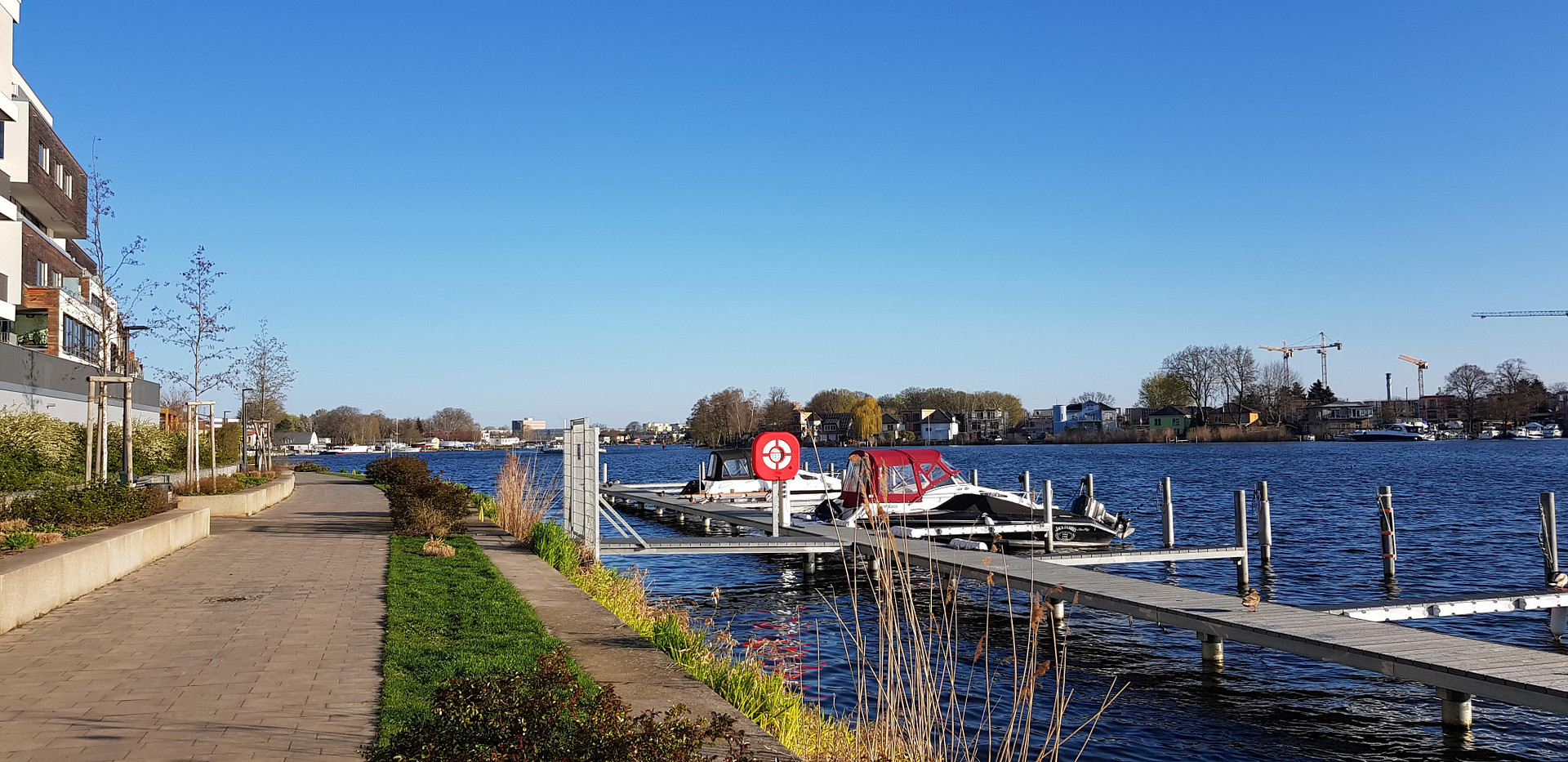 - direkt auf dem Wohnquartier befindliche Infrastruktur: Öko-Kindergarten, 2 Cafés, Ärztehaus, E-Ladesäulen, 600 m Uferweg u.v.m.