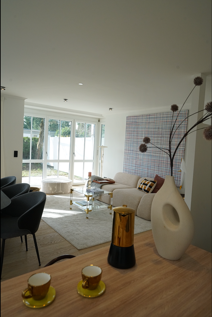 81927 München (Denning) – BayernDiese helle, großzügig geschnittene 4,5-Zimmer-Wohnung erstreckt sich über zwei Etagen und überzeugt durch ein besonderes Wohnambiente mit viel Raum für individuelle Gestaltung. Der umlaufende, private Garten mit großzügiger Terrasse und eigenem Gartentor bietet ideale Voraussetzungen zum Entspannen, Spielen oder für gesellige Stunden im Freien.