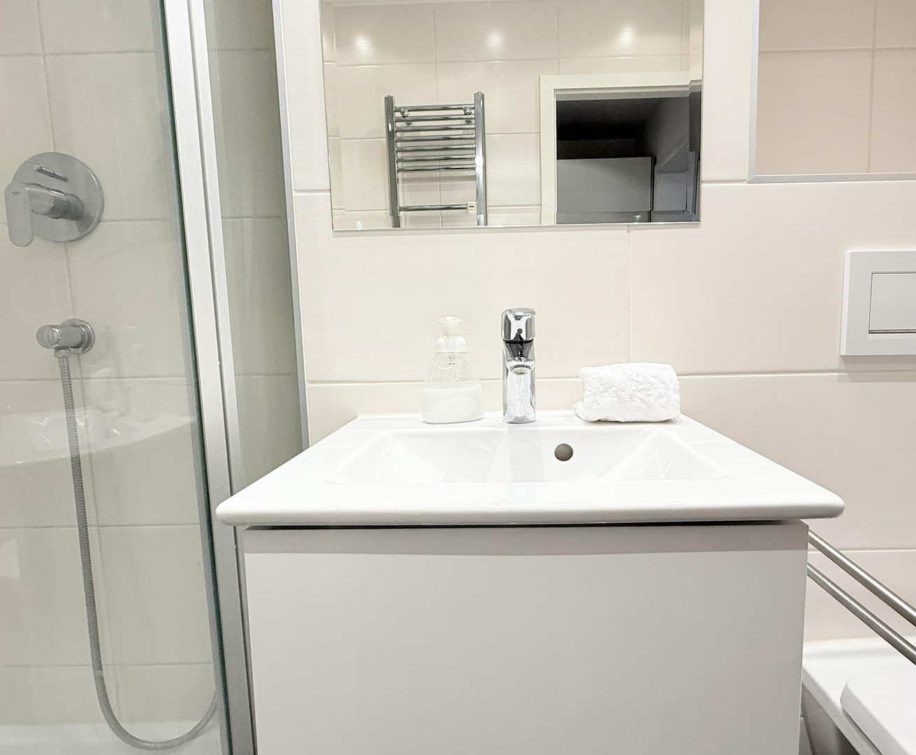 * Fußbodenheizung im Badezimmer und Chrom-Handtuchheizkörper
