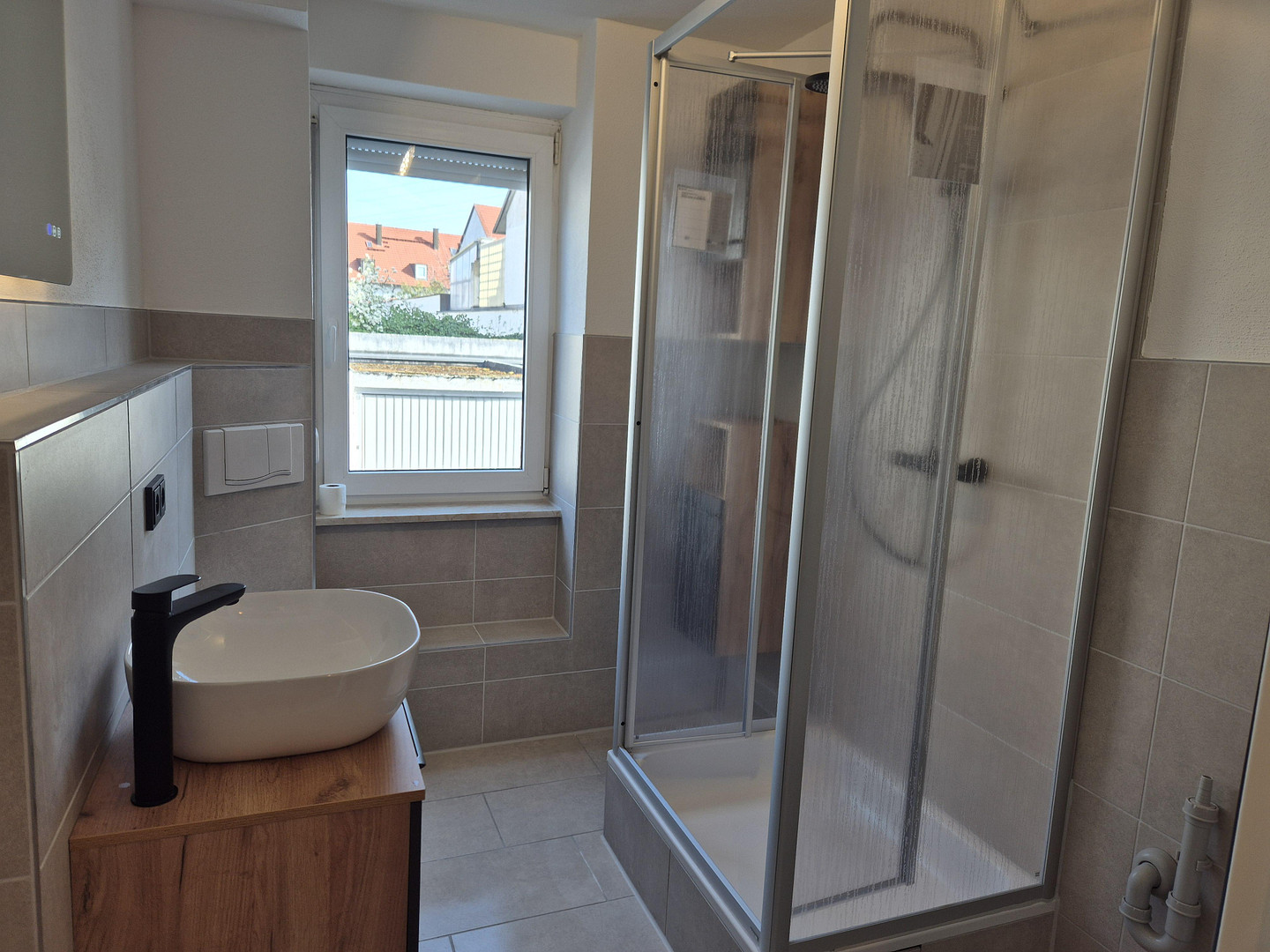 Das neue Badezimmer ist mit einer modernen Dusche und stilvollen Badmöbeln ausgestattet und überzeugt durch eine klare, hochwertige Gestaltung. Die ebenfalls neu eingebaute Einbauküche inklusive Herd, Backofen und Spülmaschine fügt sich harmonisch in den Wohnbereich ein und bietet sofortigen Komfort ohne zusätzlichen Aufwand.