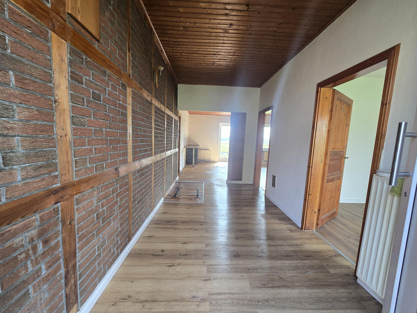 Die Wohnung liegt komplett im Grünen, an der rechten Hausecke gelegen. Das kleine Mehrfamilienhaus mit insgesamt sieben Wohnungen liegt auf einem großen Grundstück. Insbesondere von dieser Wohnung aus schaut man rundherum auf grüne Wiesen. Die Terrasse liegt direkt vor der Pferdekoppel, welche langjährig verpachtet ist. Unverbaubarer Blick und Ruhe! Zudem hat man direkten Zugang zum großen Gemeinschaftsgarten. Einige Mietparteien haben sich gemeinschaftlich einen Pool aufgestellt - die Mitnutzung ist untereinander zu klären.