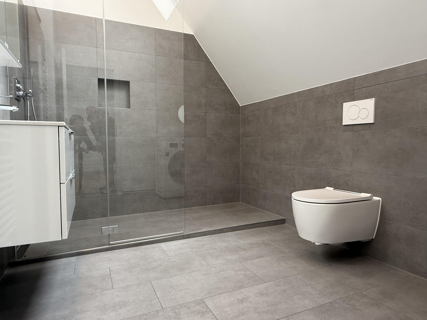 Über eine Treppe gelangen Sie in das 2. Obergeschoss. Hier bietet ein großzügiger, ca. 19 m² großer Flur mit integriertem Einbauschrank und Arbeitsplatz vielseitige Nutzungsmöglichkeiten, z. B. als Homeoffice, Studio und/oder Fitnessbereich. Der private Bereich wird durch ein hochwertiges Tageslichtbad mit bodengleicher Dusche sowie ein separates Schlafzimmer ergänzt.