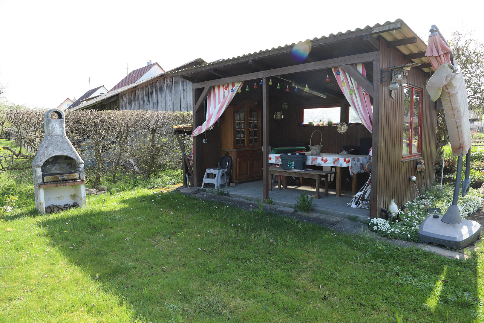 Eine Remise und abgeschirmtes Gartenhaus mit Grillplatz bietet den Bewohnern alle Möglichkeiten.
