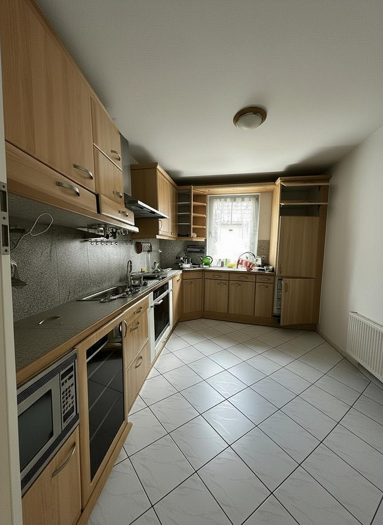 Die Wohnung wird derzeit renoviert und steht frühestens ab 15.6. 26 zur Vermietung. Die hochwertige buchefarbene Einbauküche ist mit Herd, Spülmaschine, Kühl/Gefrierkombination, Abzughaube und Microwelle ausgestattet.