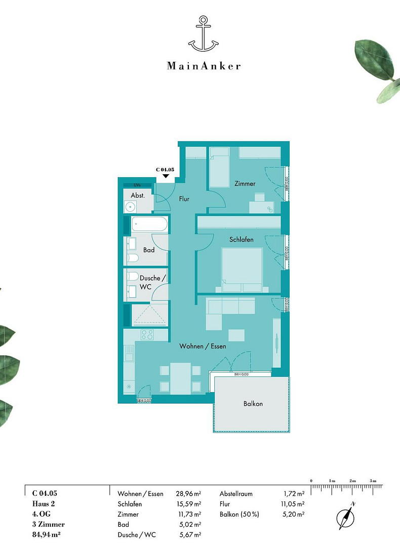 Der offen gestaltete Wohn- und Essbereich bildet das Herzstück der Wohnung und überzeugt durch klare Linien, hochwertige Materialien und zeitlose Modernität. Der angrenzende Balkon erweitert den Wohnraum nach außen und lädt zu entspannten Stunden mit Blick ins Grüne und auf das Wasser ein.