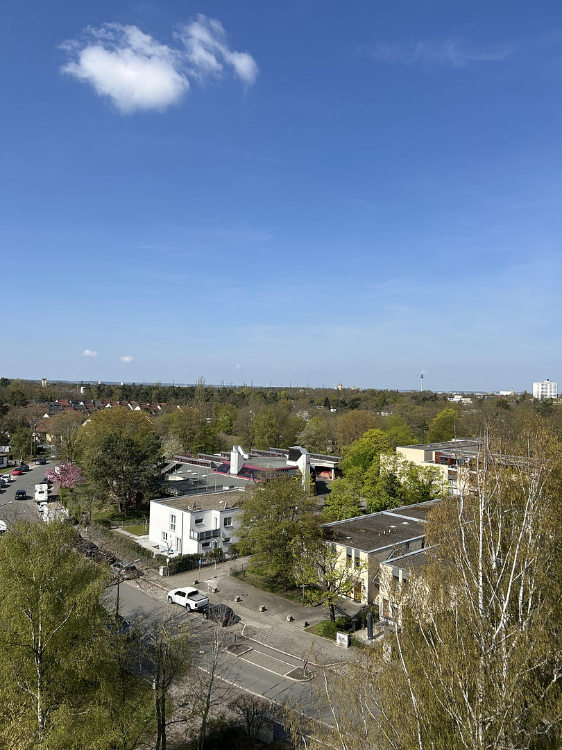 Karwendelstraße 2, 90471 Nürnberg (Langwasser) – BayernDie helle 3-Zimmer-Wohnung mit ca. 76 m² Wohnfläche befindet sich im 8. Obergeschoss eines gepflegten Mehrfamilienhauses in Nürnberg-Langwasser Nordwest. Ein Balkon Richtung Westen lädt zum Entspannen ein und bietet einen einzigartigen Weitblick. Die Wohnung hat eine funktionale Raumaufteilung und ist mit normaler Ausstattungsqualität versehen. Sie ist nicht vermietet und wird voraussichtlich ab dem 1.11.2026 verfügbar sein. Das Gebäude wurde acht Stockwerke hoch gebaut. Mit dem Lift erreicht man das Zwischengeschoss, von hier sind es ein paar Stufen bis zur 8. Etage.