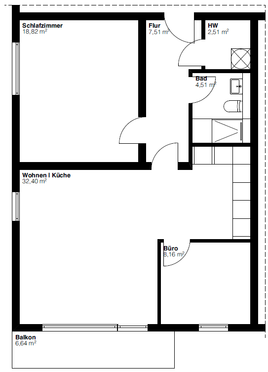 Der gut strukturierte Grundriss, lichtdurchflutete Räume und die offene Wohnküche schaffen eine angenehme, einladende Atmosphäre. Ein praktischer Hauswirtschaftsraum mit Waschmaschinenanschluss sorgt für Alltagstauglichkeit. Der Balkon mit Blick in den begrünten Innenhof bietet einen ruhigen Rückzugsort und rundet das stimmige Gesamtbild ab.