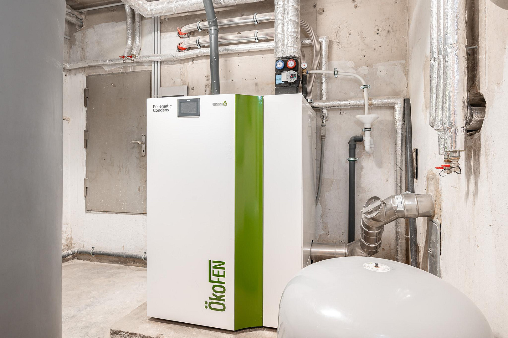 Beheizt wird die Wohnung über eine moderne, neu installierte Pelletheizung, die sowohl effizient als auch umweltfreundlich arbeitet.