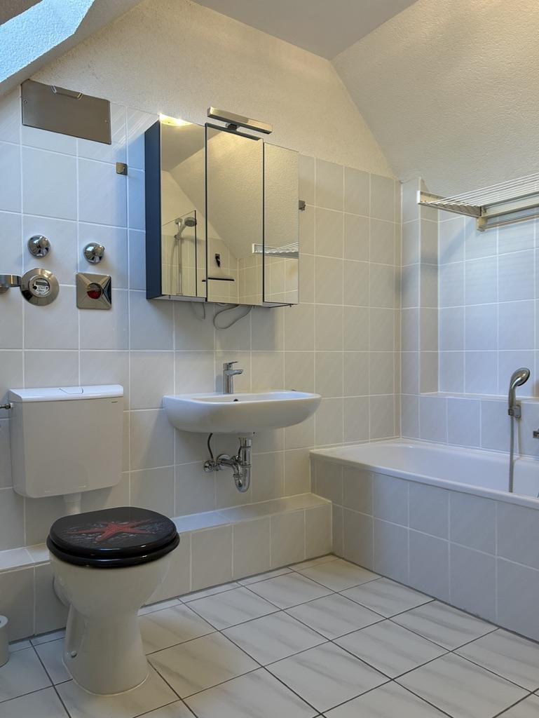 Das Tageslichtbad verfügt über eine Badewanne, eine separate Dusche sowie einen Waschmaschinenanschluss. Ergänzt wird die Wohnung durch ein separates Gäste-WC und einen praktischen Abstellraum innerhalb der Wohnung.