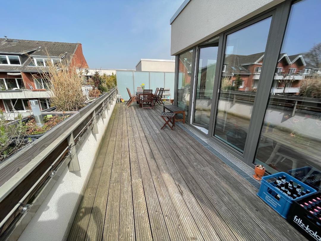 Ein besonderes Highlight ist die großzügige, nach Westen ausgerichtete Terrasse, die sonnige Nachmittags- und Abendstunden garantiert und zusätzlichen Raum für entspannte Stunden im Freien bietet. Hier lässt sich der Tag in ruhiger Atmosphäre ideal ausklingen.
