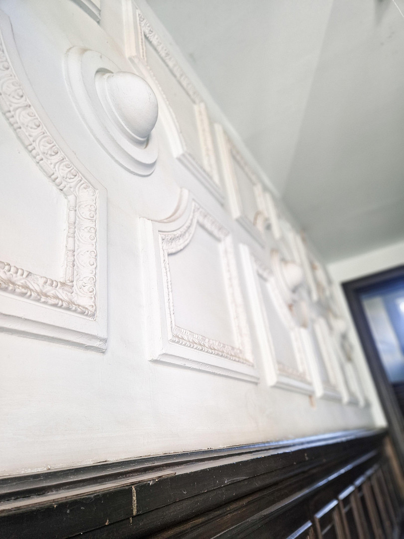 Ein besonderes Highlight des Hauses ist das originale Holztreppenhaus mit den typischen Wohnungseingangstüren aus der Gründerzeit. Verzierungen aus Stuck im Eingangsbereich betonen den klassischen Altbaucharakter.
