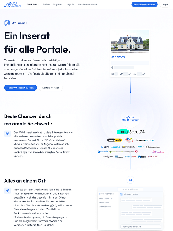 Unser Design! Es ist besser für aktuelle mobile Geräte optimiert, sieht moderner aus und zeigt Ihnen die wichtigsten Informationen klarer und übersichtlicher. Verkäufer und Vermieter sehen nun auf einen Blick, dass ohne-makler noch mehr bietet als nur die reichweitenstärksten Immobilieninserate. Auch die verbesserte Suche und die schickeren Inserate kommen Ihnen zu Gute.