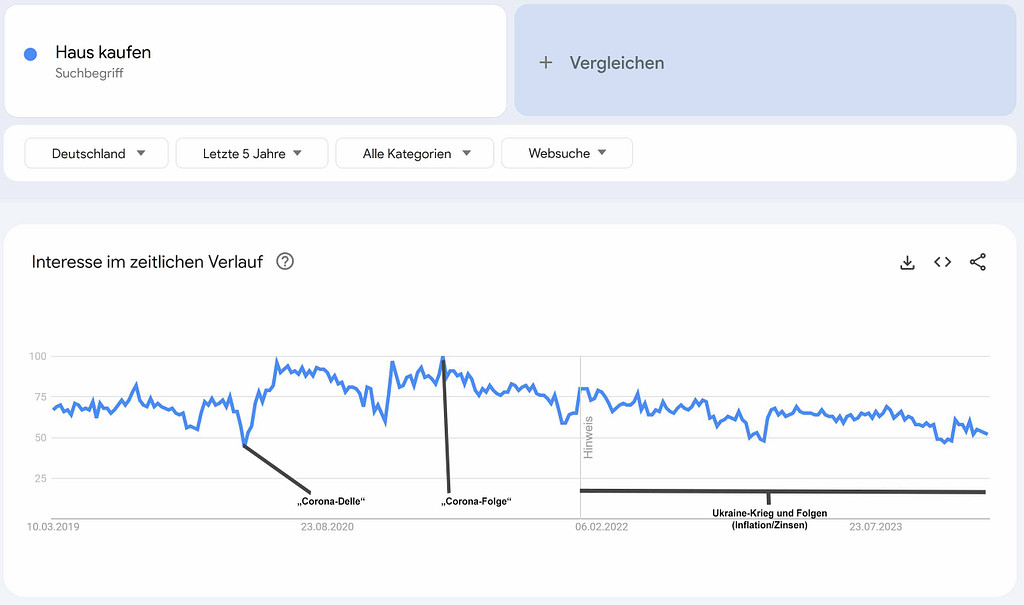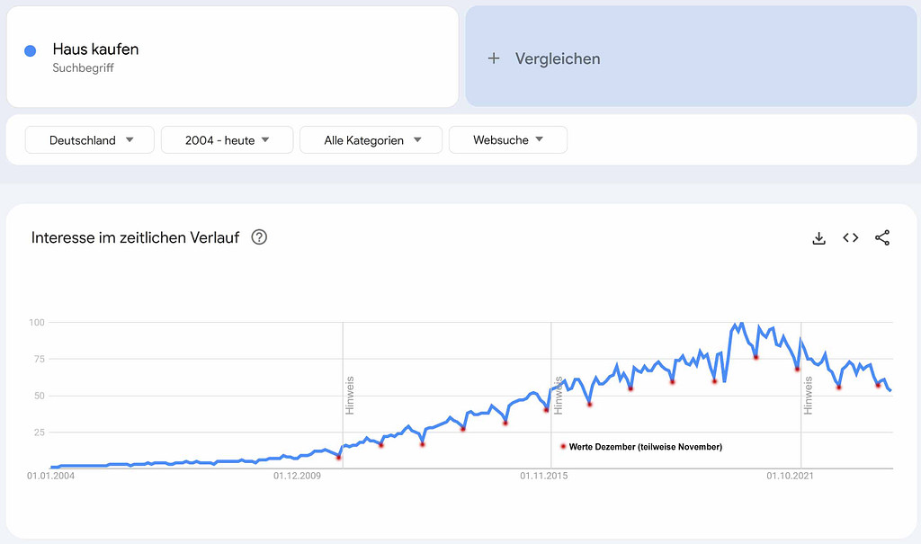 Google Trends zeigt die Websuche nach „Haus kaufen“