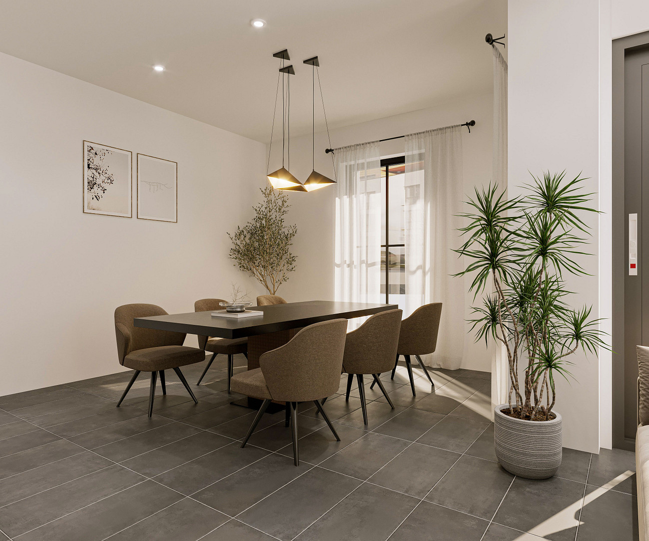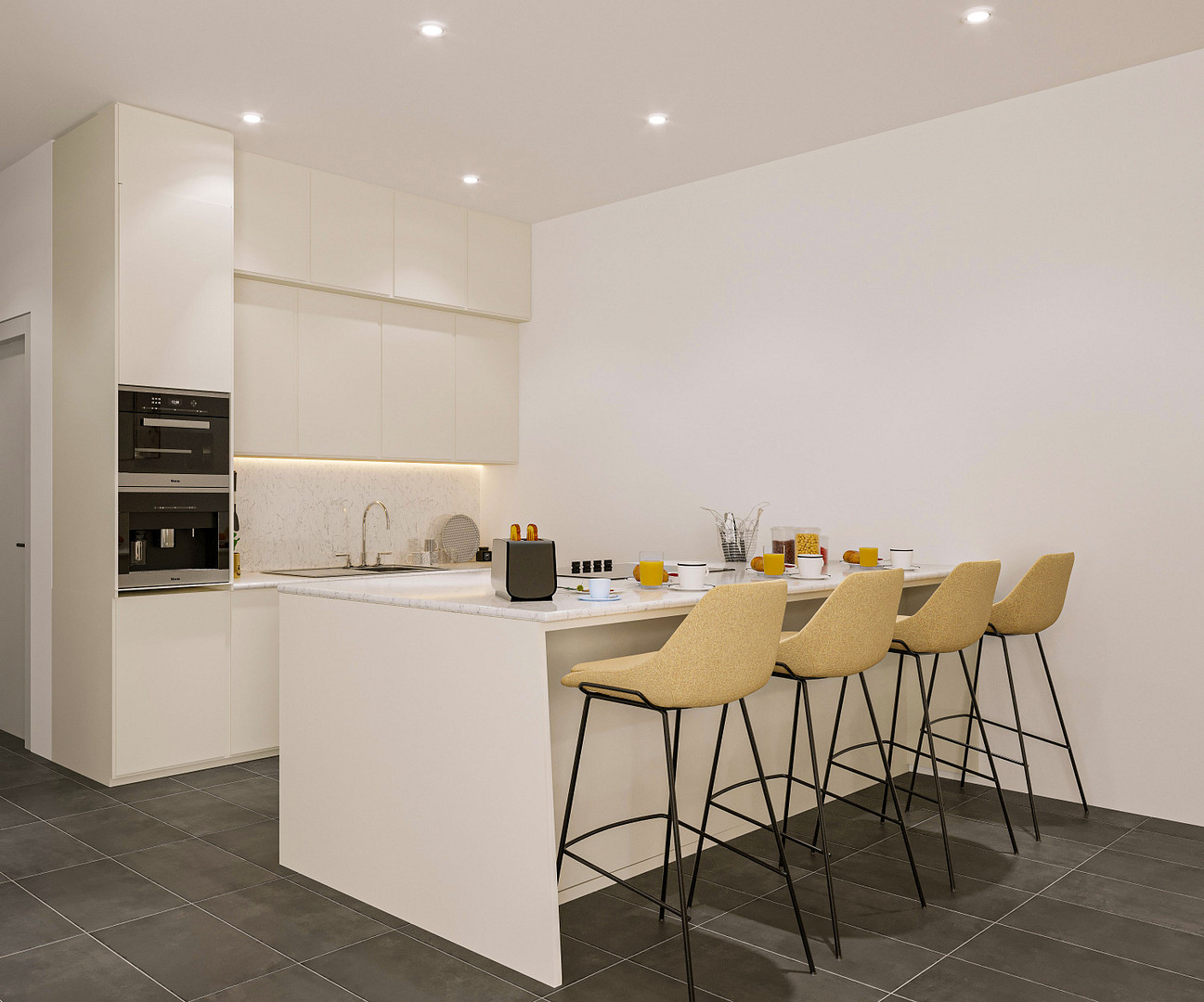 Jede Einheit verfügt über einen einladenden offenen Wohn- und Essbereich, der direkt zum Balkon führt – ideal für geselliges Beisammensein, Aufenthalt im Freien und einen fließenden Übergang zwischen Innen- und Außenraum. Die modernen Badezimmer sind wahlweise mit Dusche oder Badewanne ausgestattet und unterstreichen den hochwertigen Wohnstandard.