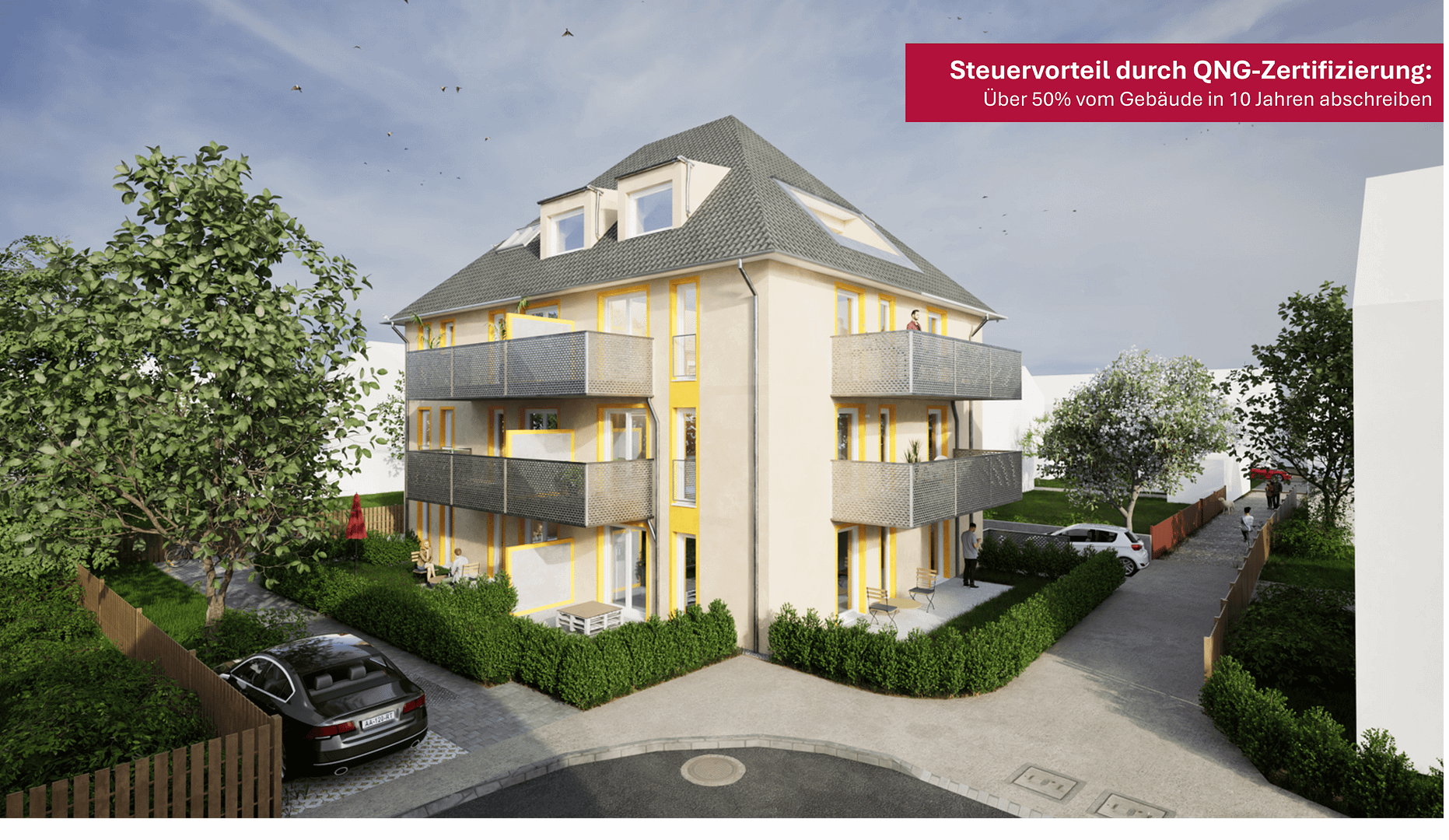 - KfW-40-Standard und QNG-Zertifizierung für nachhaltiges Bauen und attraktive steuerliche Abschreibungsmöglichkeiten